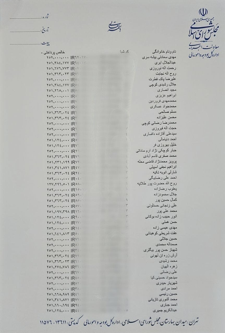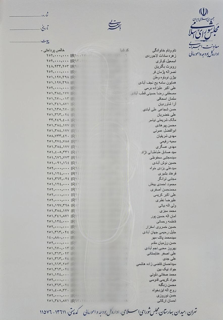 وی افزود: من با پیگیری که از معاونت اجرایی و اداره کل بودجه مجلس انجام دادم، فهرست پرداختی نمایندگان حدود ۲۵ میلیون تومان است و اعدادی که بیش از این در فضای مجازی منتشر میشود دروغپردازی علیه نمایندگان و مجلس است.