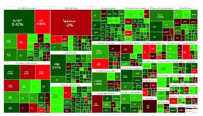 نقشه بازار در پایان معاملات روز یکشنبه ۲۹ بهمن ۱۴۰۲