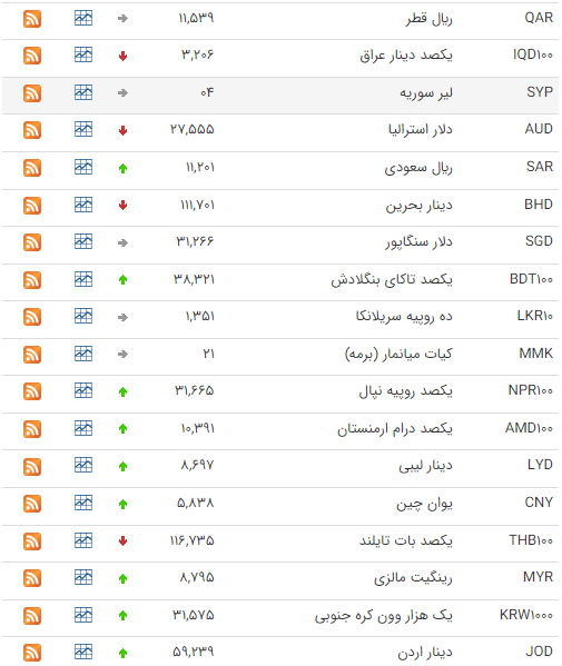 هر یوان چین هم ۵۹ هزار و ۱۱۴ ریال خرید و ۵۹ هزار و ۶۵۱ ریال فروخته شد.