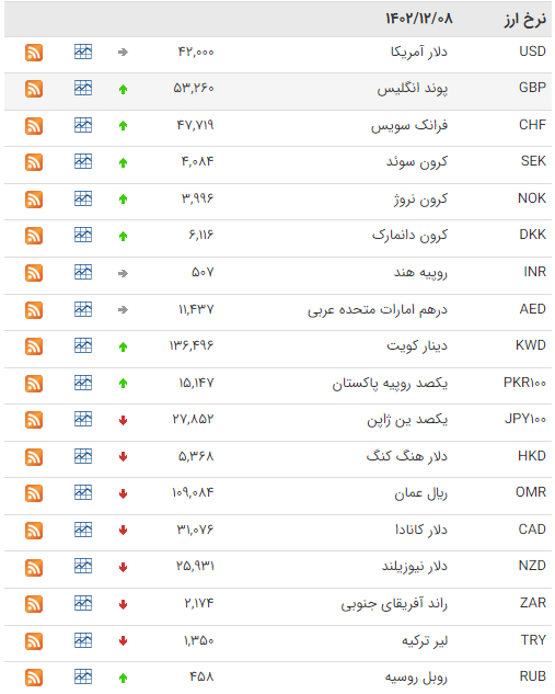 امروز سه شنبه (8 اسفند)، نرخ هر پوند 53 هزار و 260 ریال و یورو 45 هزار و 588 ریال اعلام شد