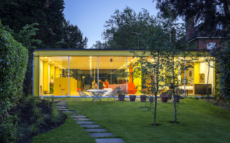 این خانه ۱۴۰ مترمربعی شامل سطوح افقی است که ستونهای فولادی از آنها پشتیبانی میکنند و شیشههای کف تا سقف، دیوارهای خارجی را شکل میدهند و به بازدیدکنندگان اجازه میدهند مستقیماً از یک طرف، طرف دیگر را ببینند.