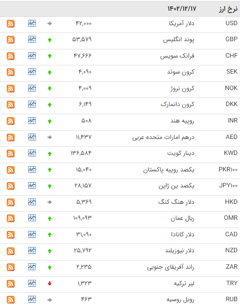 امروز نرخ رسمی ۴۶ ارز را اعلام کرد که بر اساس آن نرخ 31 ارز افزایش و نرخ 3 ارز کاهش یافت، نرخ باقی ارز‌ها ثابت ماند.
