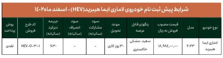 فروش فوری لاماری ایما هیبریدی برای اولین بار با قیمت قطعی آغاز شد +قیمت