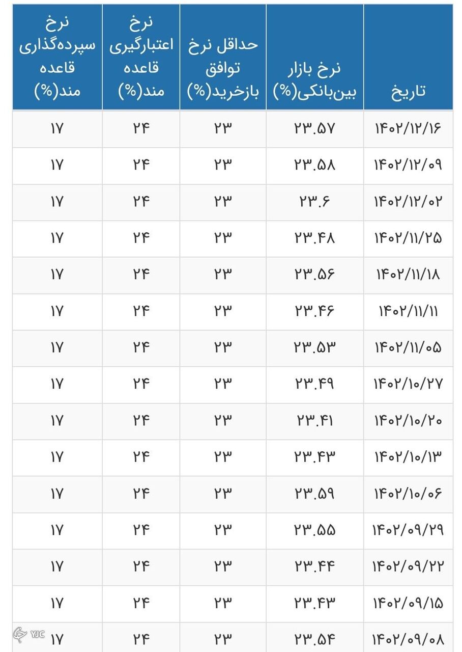 نرخ جدید بهره بینبانکی اعلام شد + جدول