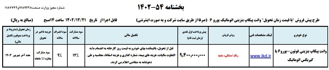 شرایط فروش پیکاپ فوتون اسفند 1402: