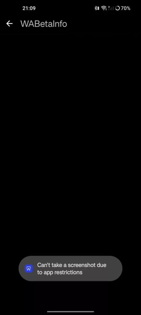 براساس گزارش Android Police، بهنظر میرسد برخی کاربران در جدیدترین نسخه بتای این اپ، قادر به گرفتن اسکرینشات از تصویر پروفایل مخاطبین خود نیستند. وقتی بخواهید از عکس دیگران اسکرینشات بگیرید، ظاهراً واتساپ خطایی نشان میدهد که بهدلیل محدودیتهای این برنامه، نمیتوان اسکرینشات گرفت. در اسکرینشات برخی کاربران نیز، تصویر مخاطب خالی ذخیره میشود.