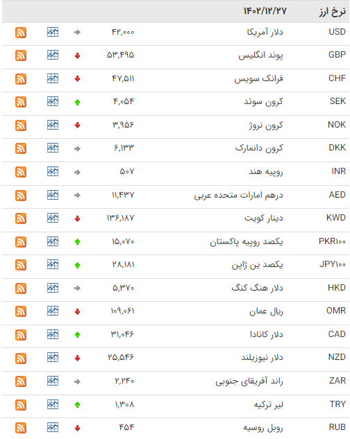 نرخ رسمی درهم امارات متحده عربی، یوان چين و افغانی افغانستان هم بدون تغییر باقی ماند.