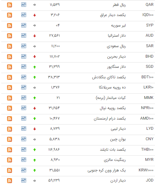 امروز نرخ رسمی ۴۶ ارز را اعلام کرد که بر اساس آن نرخ ۱۵ ارز افزایش و نرخ ۱۵ ارز کاهش یافت، نرخ باقی ارزها ثابت ماند.