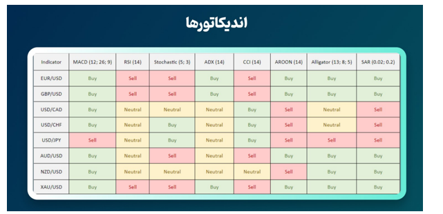 این که تک تک اندیکاتورهای پراستفاده را روی نمودار نماد مورد نظر اضافه کرده و نتیجه را بررسی کنید، کاری زمانبر است. تازه به فرض اینکه هیچ اشتباهی نداشته باشید و برداشتتان از دادههای اندیکاتور دقیق باشد، باید زمان زیادی را صرف انجام این کار کنید. به جای صرف چنین زمان طولانیای، توصیه میکنیم حتما از بخش جدول اندیکاتورهای بولتن اقتصادی دلتا کالج استفاده کنید. در این بخش سیگنال (خرید یا فروش) تمام اندیکاتورهای پرتکرار برای مهمترین جفت ارزها ارائه شده است.