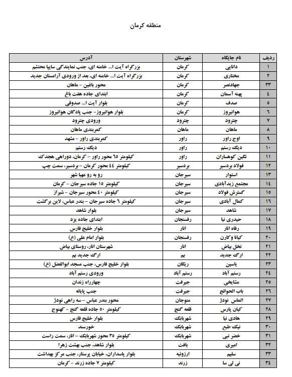 شرکت ملی پخش فرآوردههای نفتی ایران اعلام کرد: به منظور رفاه حال مسافران نوروزی در استانهای کرمان، سیستان و بلوچستان و هرمزگان (جنوب شرقی)، تعدادی از جایگاهها برای عرضه سوخت با کارت آزاد تعیین شده است.