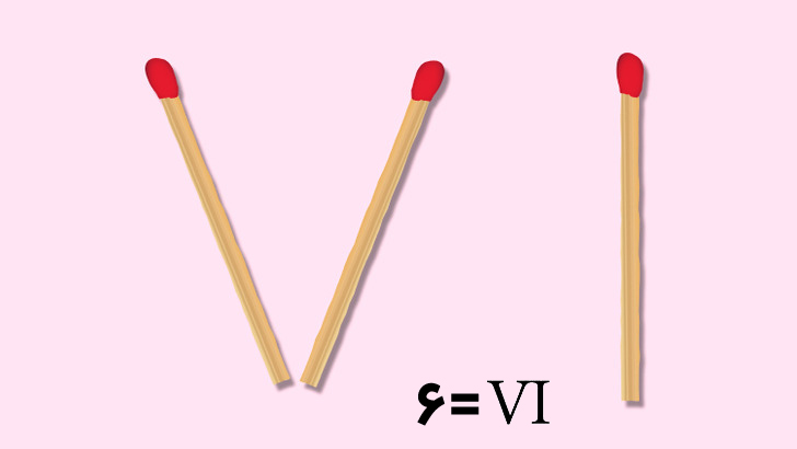 با جا به جا کردن دو تا از کبریت ها می توانید آن ها را تبدیل به عدد ۶ رومی کنید.