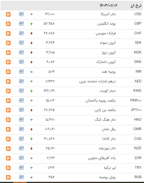 امروز (دوشنبه 6 فروردین ماه) نرخ هر پوند 52 هزار و 958 ریال و یورو45 هزار و 389 ریال اعلام شد.