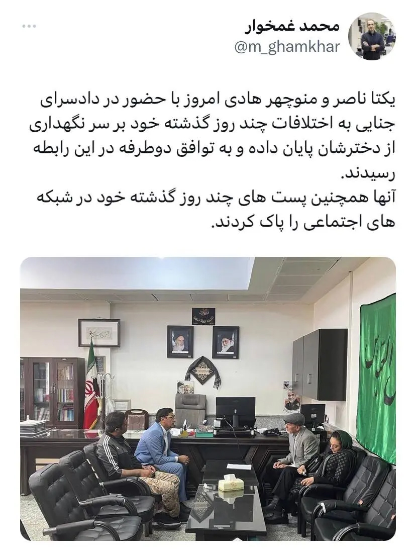 منوچهر هادی به صحبت های یکتا ناصر درباره جلسه با قاضی پرونده دخترشان در یک پست اینستاگرامی پاسخ داد.