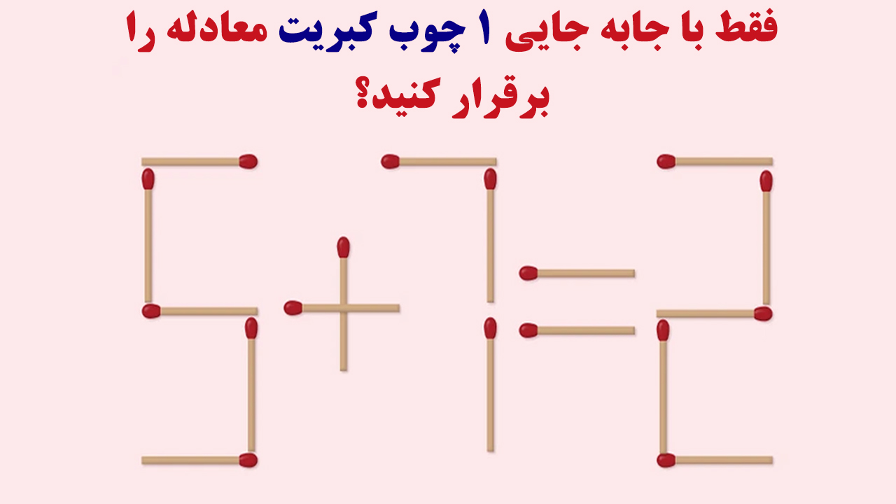 معما؛ فقط با جا به جایی 1 چوب کبریت معادله را برقرار کنید؟+ پاسخ