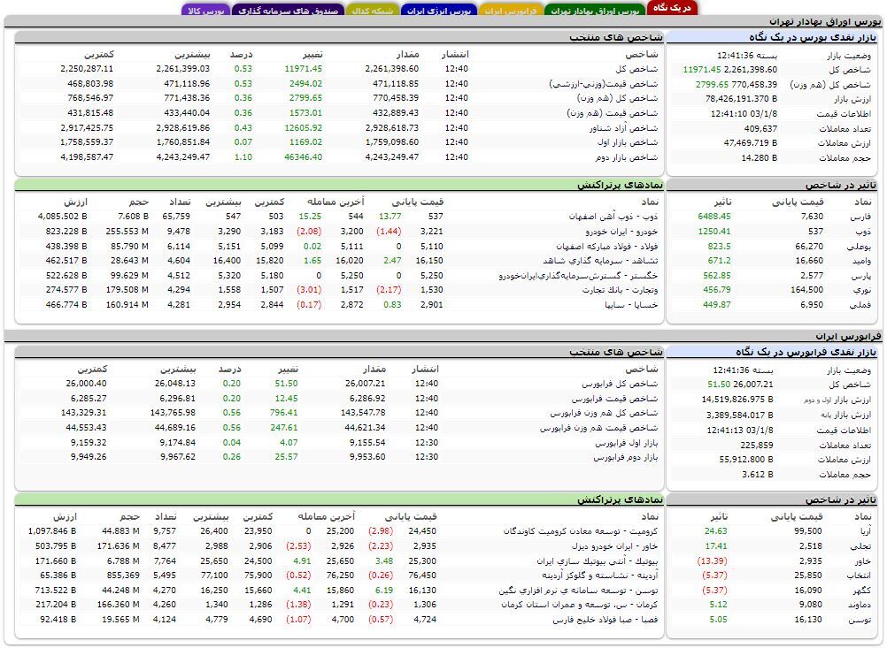 شاخص کل فرابورس نیز امروز با ۵۱ واحد افزایش به عدد ۲۶ هزار و هفت واحد رسید.