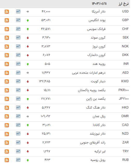 امروز (شنبه 11 فروردین ماه) نرخ هر پوند 53 هزار و 61 ریال و یورو 45 هزار و 321 ریال اعلام شد.