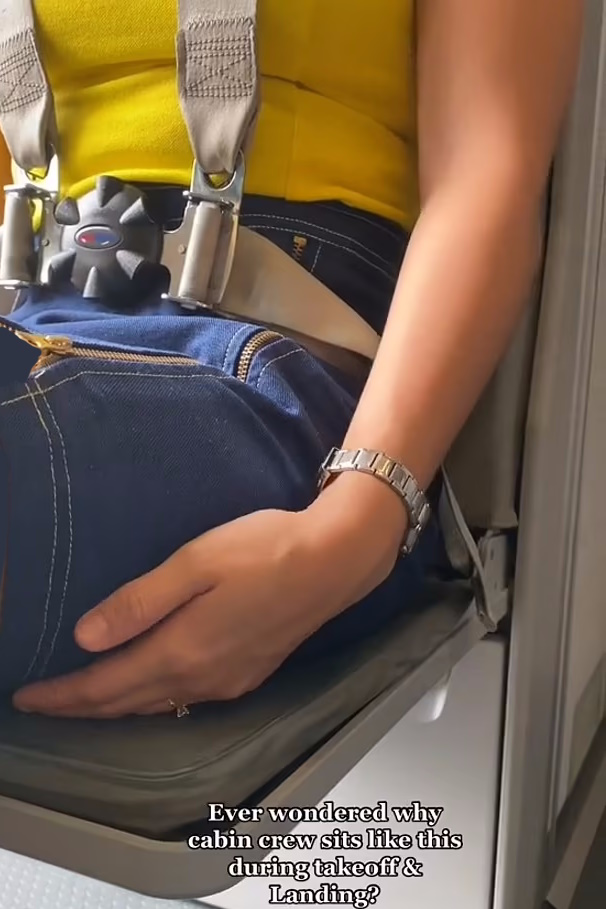 هنی لیم، مهماندار شرکت هواپیمایی فیلیپینی سبو پسیفیک در حساب کاربری خود در تیکتاک توضیح داد که چرا خدمه پرواز قبل از برخاستن و فرود هواپیما و پس از آماده کردن صندلی تاشوی خود، روی دستانشان مینشینند.