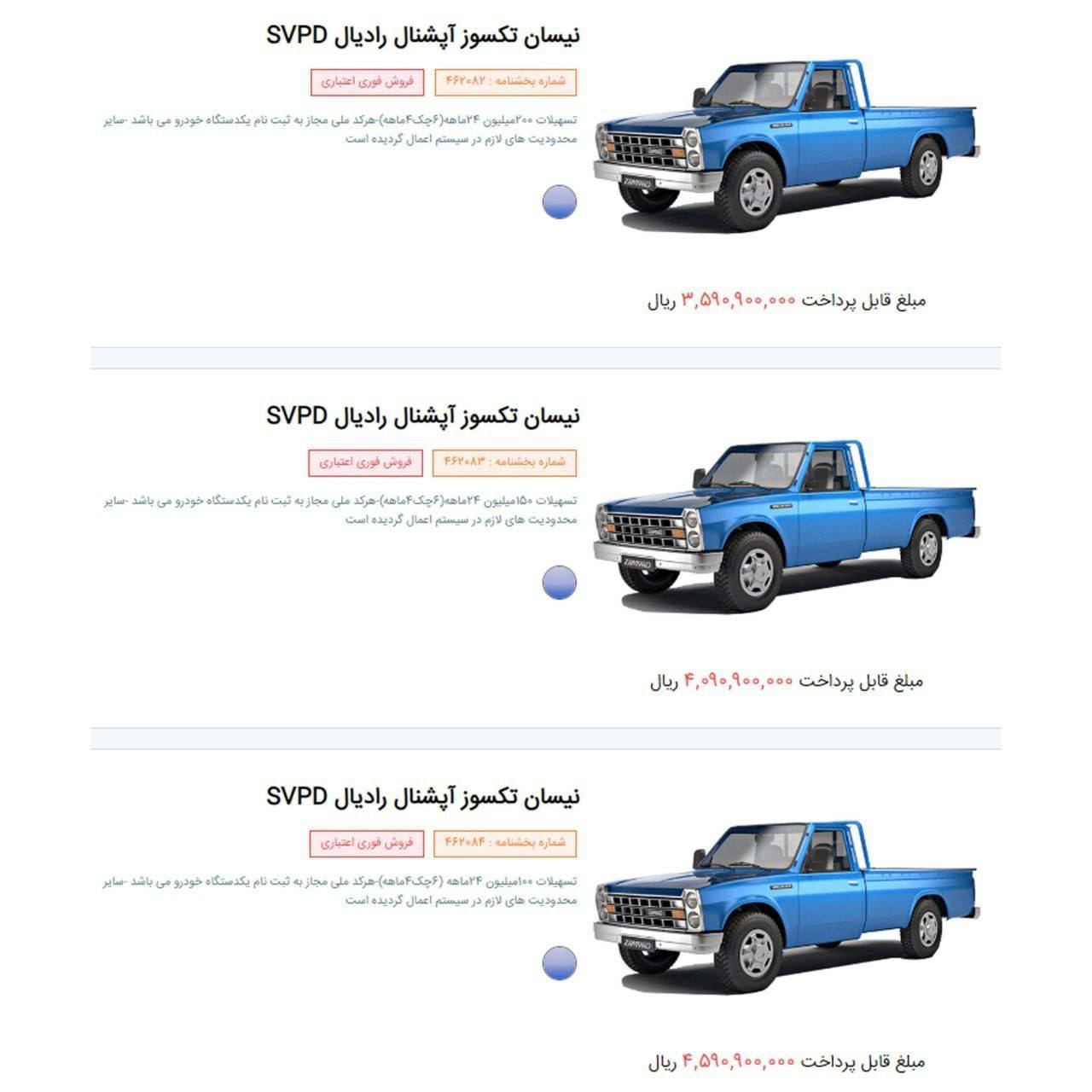فروش نقدی و چکی وانت نیسان زامیاد به شکل فوری آغاز شد + قیمت