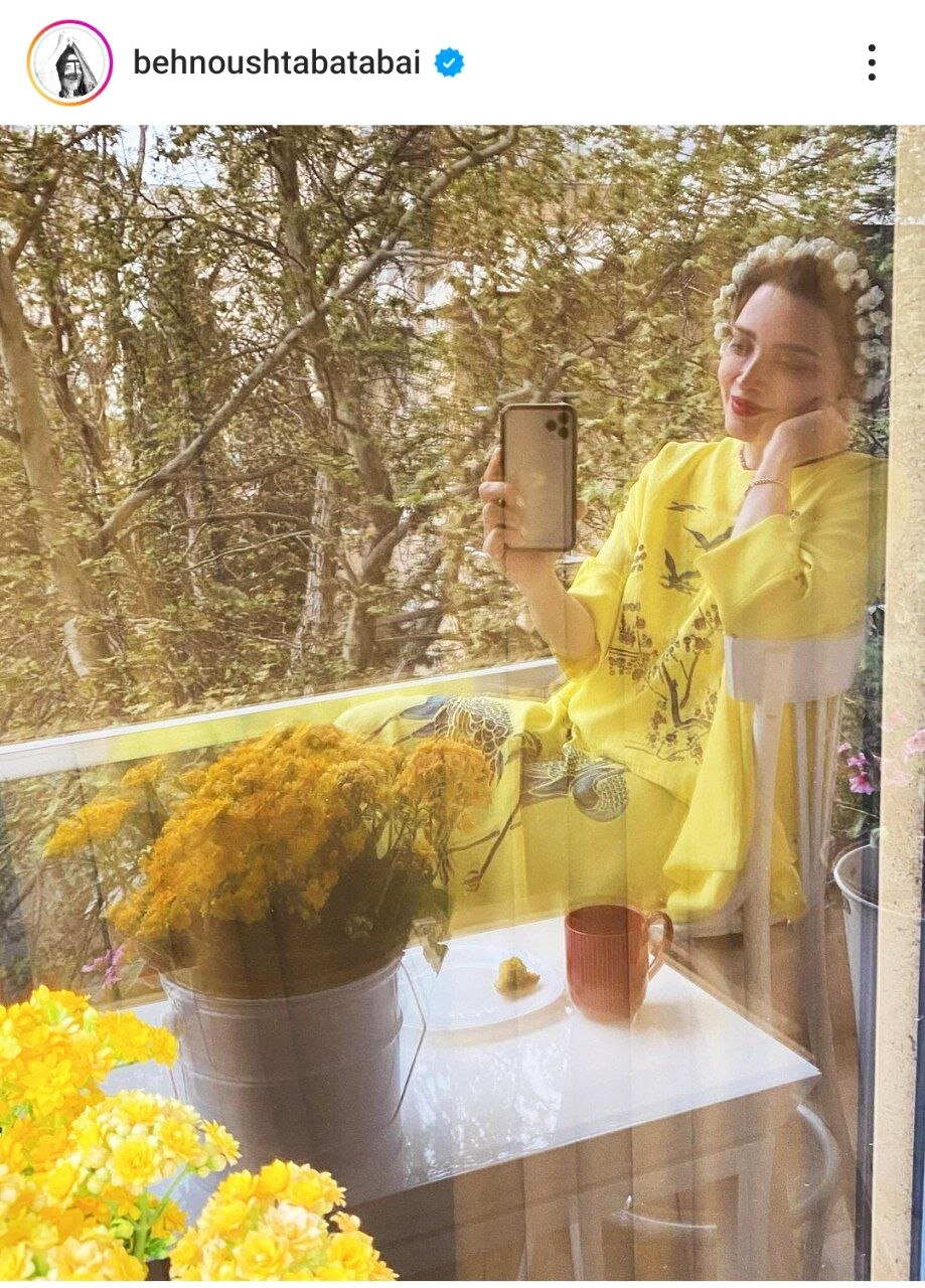 استایل زردرنگ بهنوش طباطبایی در بالکن خانه پربازدید شد+ عکس