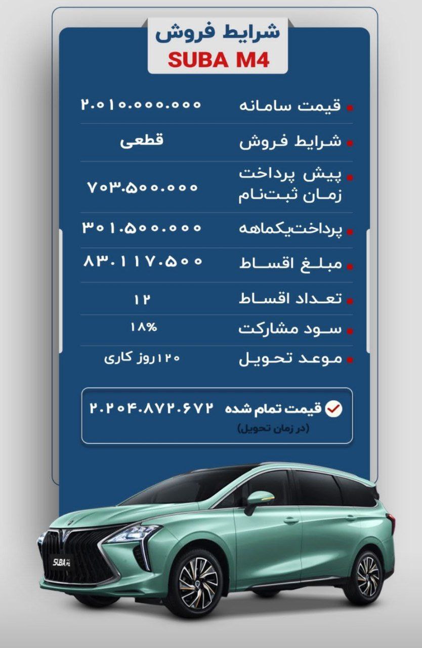 شرایط فروش ۳ خودروی فرداموتورز شامل مدلهای سوبا M4، اف ام سی T5 و اف ام سی ۵۱۱ اعلام شد.