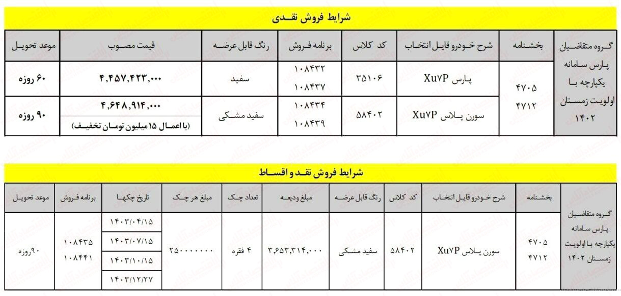 قیمت جدید کارخانه پژو پارس اعلام شد / افزایش ۱۵۱ میلیون تومانی! + جدول