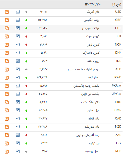 امروز نرخ رسمی ۴۶ ارز را اعلام کرد که بر اساس آن نرخ 24 ارز افزایش و نرخ 12 ارز کاهش یافت، نرخ باقی ارزها ثابت ماند.