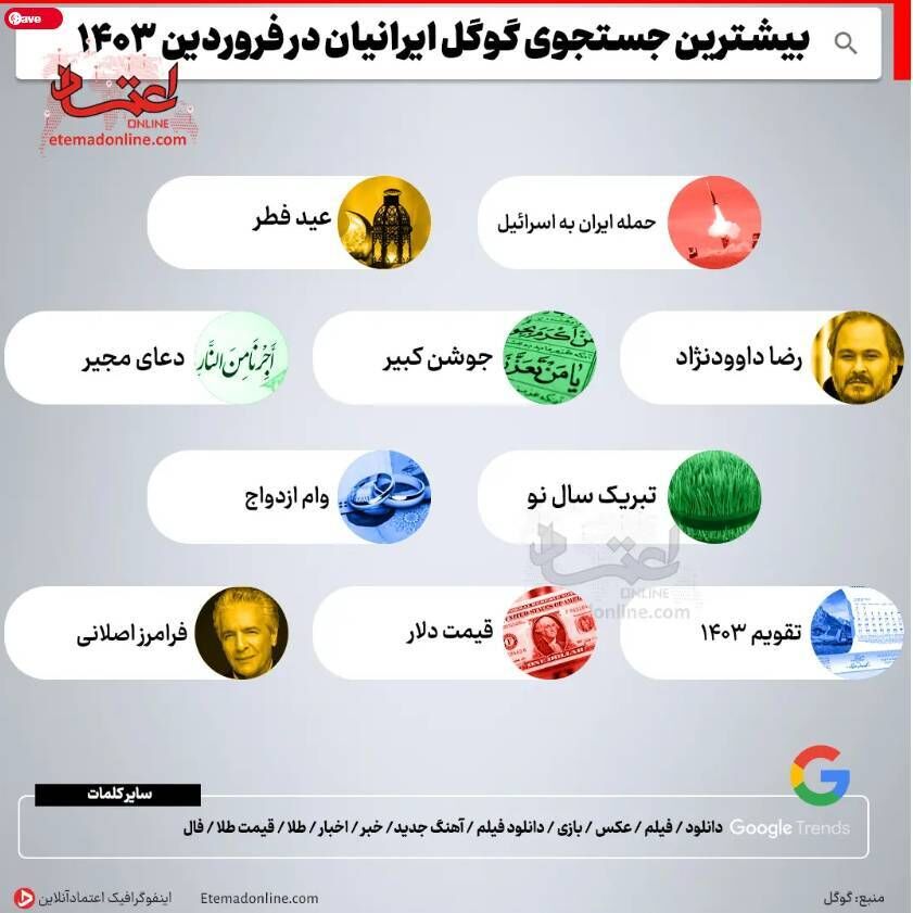 به گزارش سایت طلا، مهمترین اتفاقی که نه تنها در ایران بلکه در جهان جستجو شد، پاسخ و حمله موشکی و پهپادی ایران به اسرائیل بود. بعد از آن ماه رمضان و شب قدر و دعاهای این ماه بیشترین جستوجو را داشتند. نکته جالب اینجاست، مردمی که دعای مجیر جستوجو میکنند، مرگ «فرامرز اصلانی» خواننده هم برایشان مهم است.