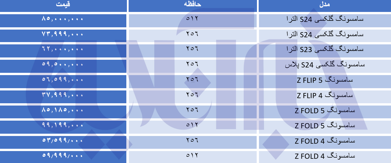 قیمت روز پرچمداران سامسونگ در جدول زیر آمدهاست: