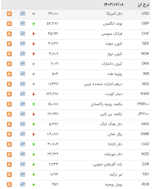 امروز ( شنبه 8 اردیبهشت ماه) نرخ هر پوند 52 هزار و 382 ریال و یورو 44 هزار و 884ریال اعلام شد.