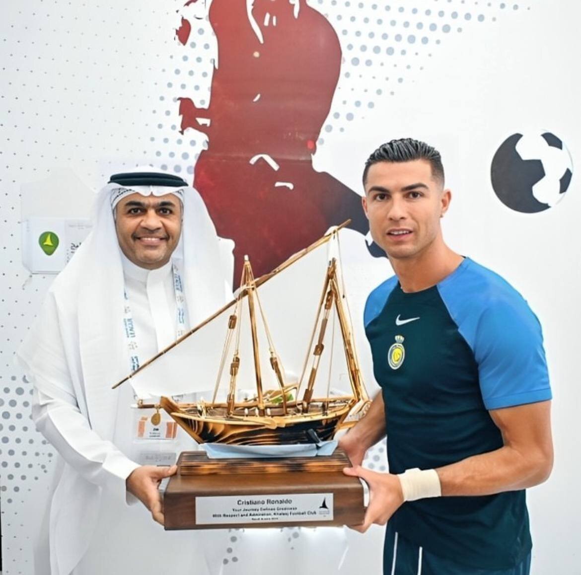 در حاشیه این رقابت، رئیس باشگاه الخلیج عربستان، به رسم یادبود هدیه ای متفاوت به ستاره پرتغالی داد که در ادامه میبینید.