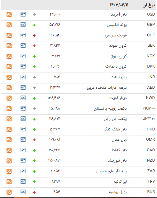 امروز نرخ رسمی ۴۶ ارز را اعلام کرد که بر اساس آن نرخ 21 ارز افزایش و نرخ 17 ارز کاهش یافت، نرخ باقی ارزها ثابت ماند.