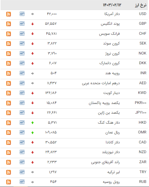 امروز (چهارشنبه 12 اردیبهشت ماه) نرخ هر پوند 52 هزار و 557 ریال و یورو 44 هزار و 873 ریال اعلام شد.