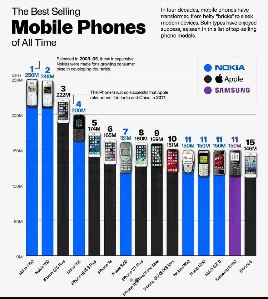 باورتان میشود این گوشی تلفن همراه، پرفروشترین در جهان است؟+اینفوگرافیک