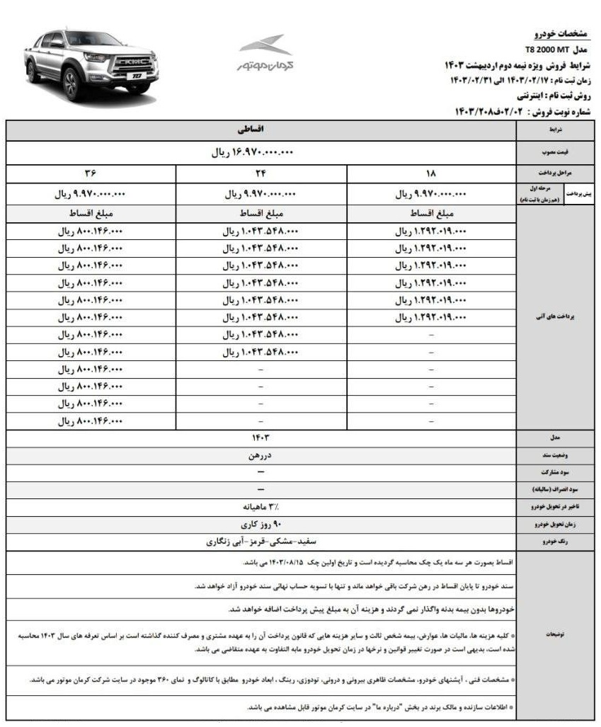 شرکت کرمان موتور از امروز (دوشنبه 17 اردیبهشت ماه 1403) فروش اقساطی محصولات خود را آغاز خواهد کرد.