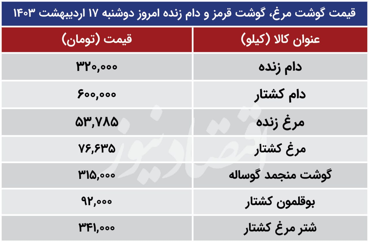 امروز همچنین در بازار هر کیلو گوشت شترمرغ کشتار 341 هزار تومان خرید و فروش شد که در مقایسه با روز گذشته تغییری را تجربه نکرده است.