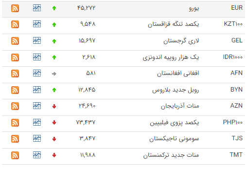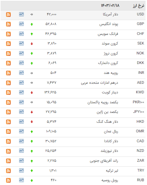 امروز نرخ رسمی ۴۶ ارز را اعلام کرد که بر اساس آن نرخ 22 ارز افزایش و نرخ 11 ارز کاهش یافت، نرخ باقی ارز‌ها ثابت ماند. امروز ( سه شنبه 18 اردیبهشت ماه) نرخ هر پوند 52 هزار و 808 ریال و یورو 45 هزار و 272 ریال اعلام شد.