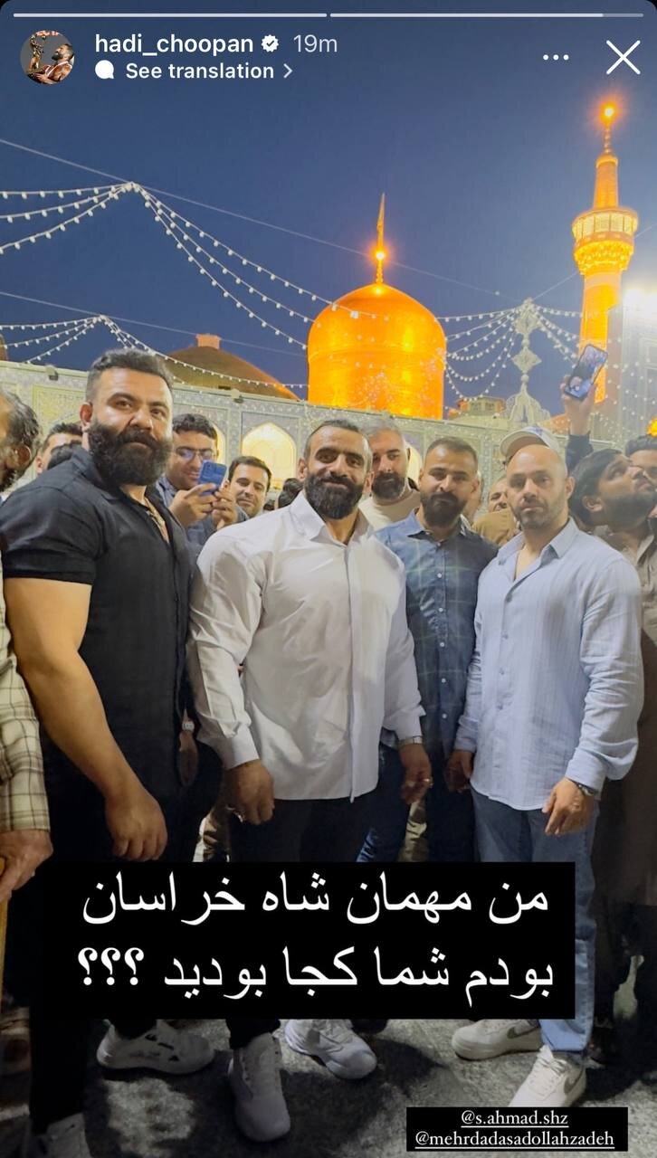 هادی چوپان، قهرمان ایرانی پرورش اندام تصویری از خودش در حرم امام رضا (ع) منتشر کرد.