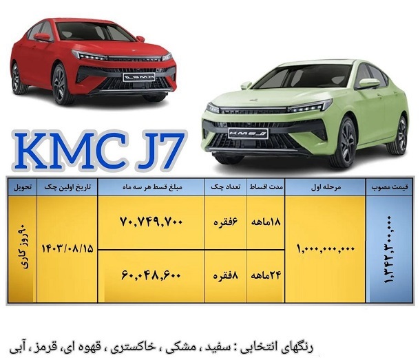شرایط طرح فروش نقد و اقساط کرمان موتور اردیبهشت 1403 شامل KMC A5 و KMC J7 اعلام شد.
