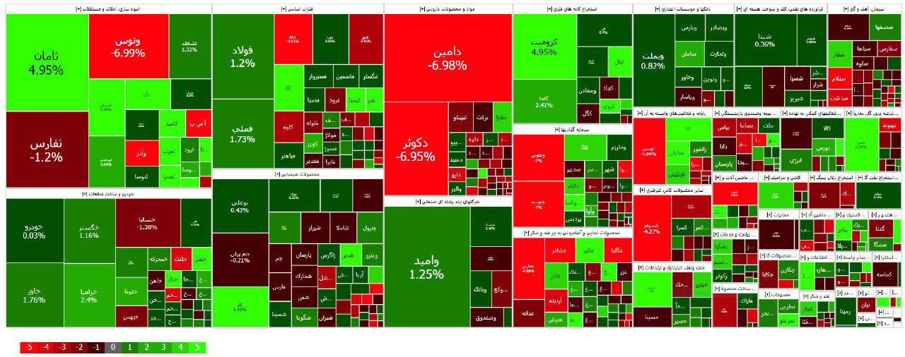 نمادهای فملی، وامید و اپال بیشترین تاثیر مثبت و نمادهای فارس، فخوز، شپنا و خودرو بیشترین اثر منفی را بر شاخص بورس داشتند.