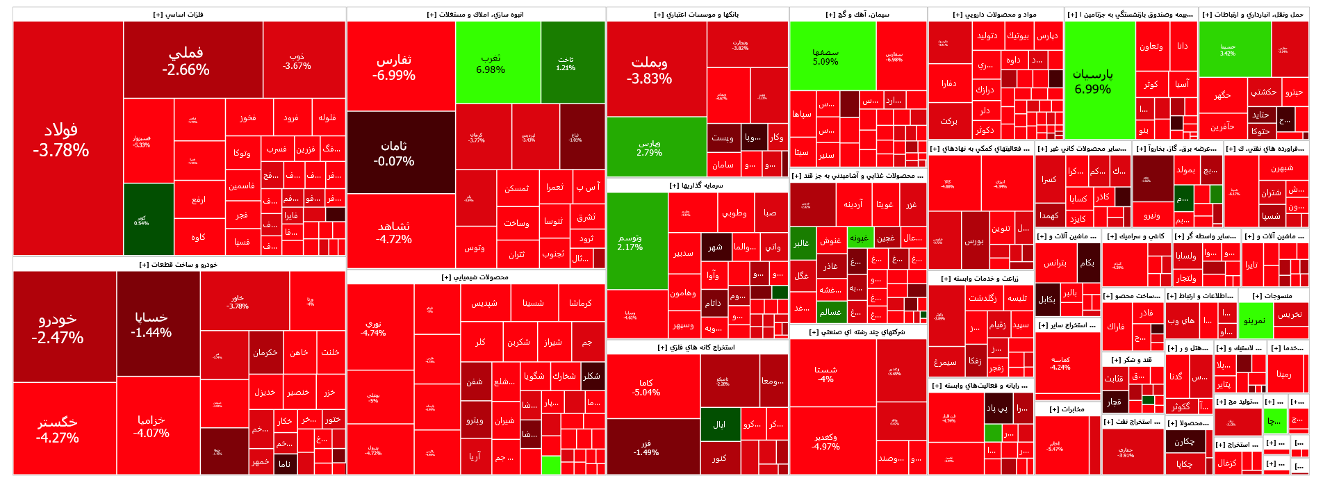 در این روز به ترتیب نمادهای فارس، فولاد، فملی و شپنا بیشترین تاثیر منفی را بر شاخص کل بازار سرمایه داشتند و عامل افت بازار سرمایه شدند.