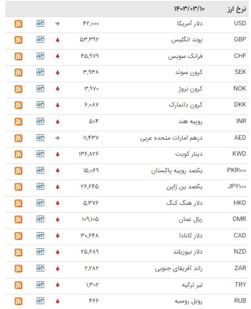 امروز پنج شنبه (10خرداد ماه) نرخ هر پوند 53 هزار و 392 ریال و یورو 45 هزار و 407 ریال اعلام شد.