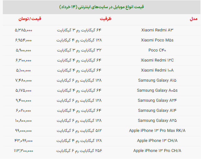 برای اطلاع از قیمت انواع گوشی آیفون، سامسونگ و شیائومی در سایتهای اینترنتی جدولی را که آماده کردهایم بخوانید.