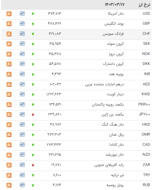 بانک مرکزی امروز نرخ رسمی ارز را اعلام کرد که بر اساس آن نرخ 44 ارز افزایش یافت و 2 ارز کاهش یافت.
