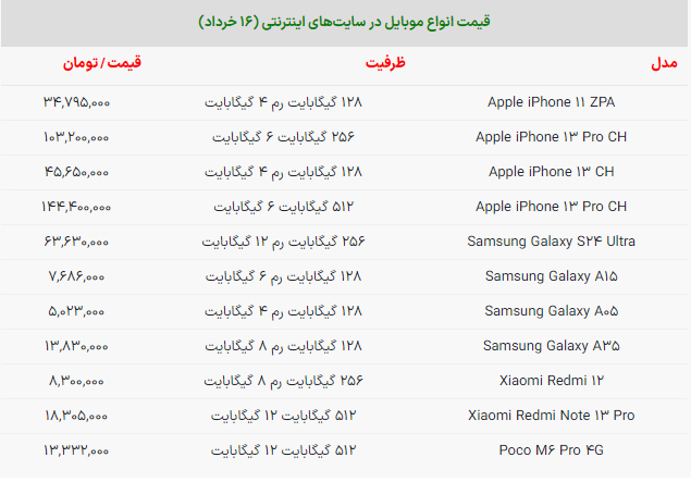 برای اطلاع از قیمت انواع گوشی آیفون، سامسونگ و شیائومی در سایتهای اینترنتی جدولی را که آماده کردهایم بخوانید.