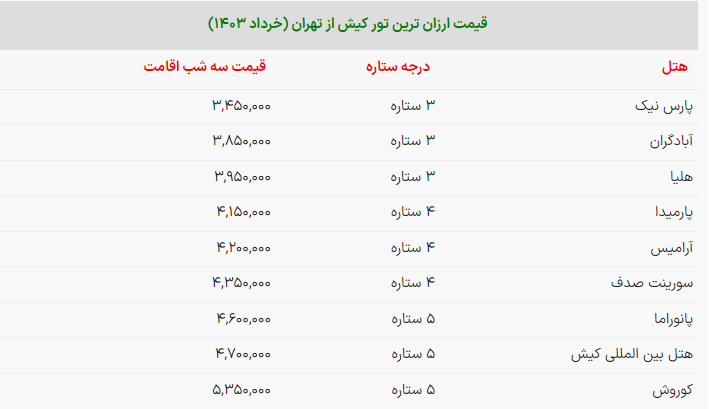قیمت ارزان ترین تورهای کیش ویژه خردادماه+ جدول
