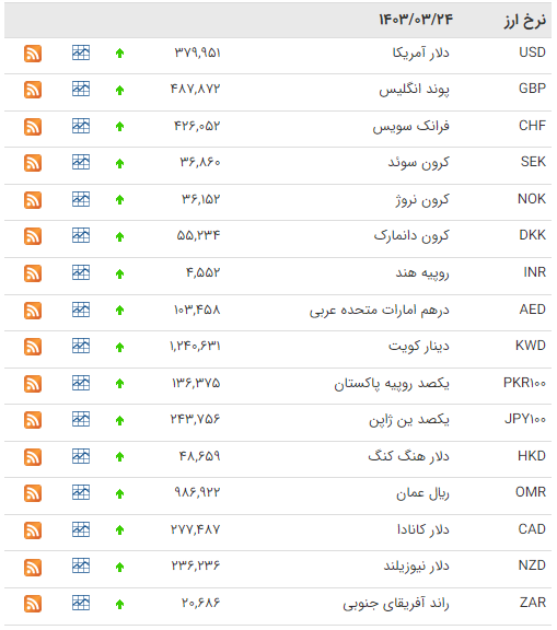 بانک مرکزی امروز نرخ رسمی ارز را اعلام کرد که بر اساس آن نرخ44 ارز افزایش یافت