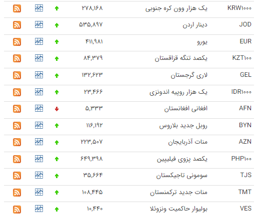 همچنین قیمت خرید یورو 48,975 (چهل و هشت هزار و نهصد و هفتاد و پنج تومان) و قیمت فروش یورو 49,470 (چهل و نه هزار و چهارصد و هفتاد تومان) است.