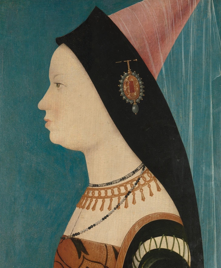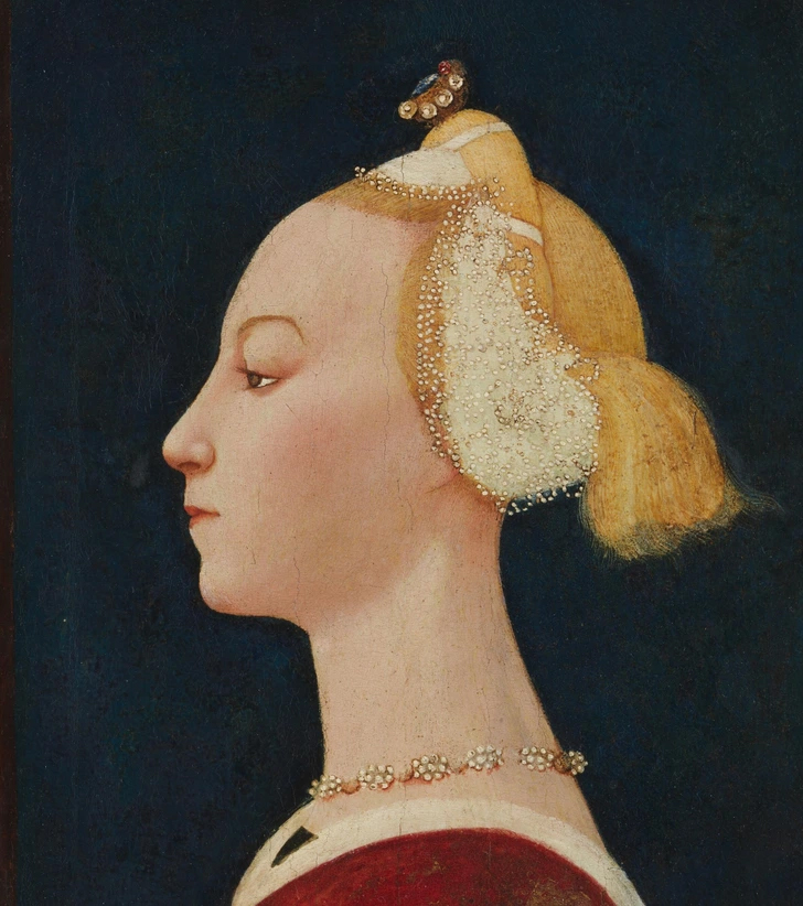 زنان میلانی در پایان قرن پانزدهم ثروت خود را با لباسها و مدل موهایی که استادانه آراسته میشد به رخ میکشیدند. آنها موهای خود را در پارچه میپیچیدند و بالای آن یک روبان مرواریددوزیشده میبستند. پشت سر با توری ظریف تزئینشده با سنگهای قیمتی پوشیده و همه چیز با یک بند ابریشمی ثابت میشد.