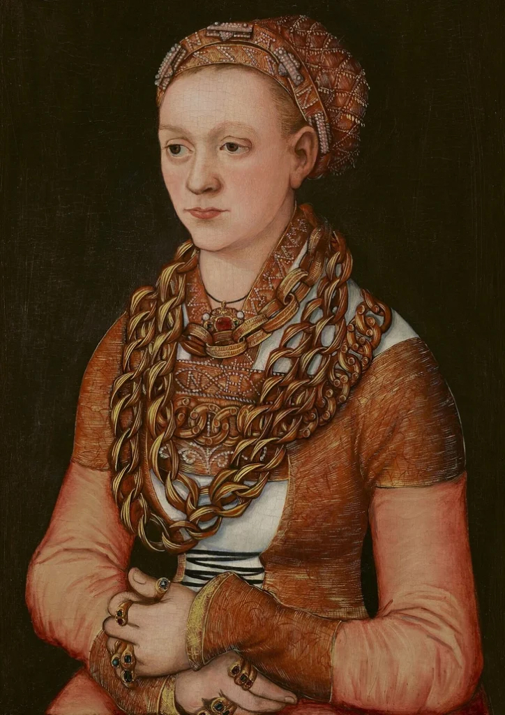 در اوایل قرن شانزدهم اشرافزادگان آلمانی خود را با زنجیرهای طلای متعددی میآراستند. آنها تلاش میکردند تا حد امکان زنجیر طلا دور گردن خود بپیچند. در نقاشی بالا اثر لوکاس کراناچ، نقاش آلمانی بهخوبی میبینیم که قسمت بالای لباس او به دلیل انبوه زنجیرهای عظیم دور گردن، قابل دیدن نیست.