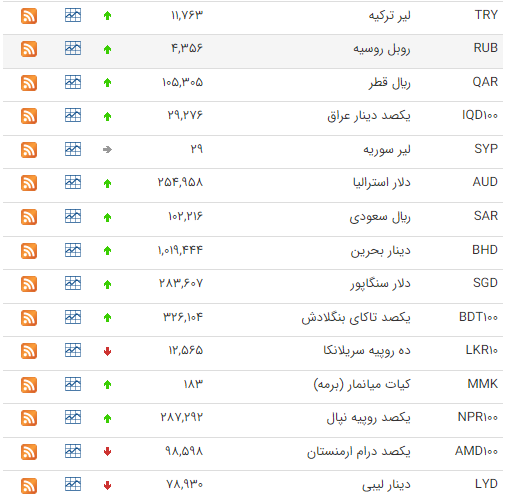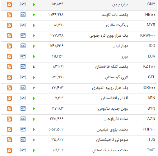 همچنین قیمت خرید یورو 48,747 (چهل و هشت هزار و هفتصد و چهل و هفت تومان) و قیمت فروش یورو 49,239 (چهل و نه هزار و دویست و سی و نه تومان) است.